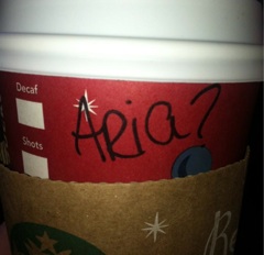 Today’s Starbucks Alter Ego comes from Johanna. She writes that usually her name gets butchered, “but one Starbucks near my office gets it right every time. Today stopped at a different one and got a very unique new moniker… so far my friends have thought the second ‘letter’ is either a Mercedes logo, an ampersand or a crude, kind of obscene drawing.”