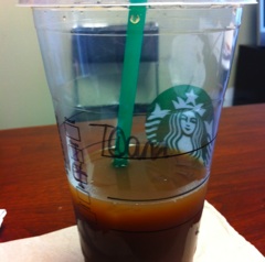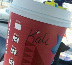 Today’s Starbucks Alter Ego comes from Tracie. We’re not sure what she was wearing when this photo was snapped, but apparently, she looked a little green to the barista on duty.