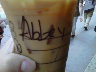 Today’s Starbucks Alter Ego comes from Amy. She writes: “First problem, [the barista] spelled Abbey like the place where nuns live. Second problem…my name is Amy.”
