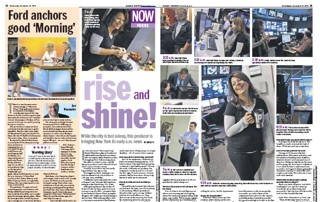 NY1 is in the New York Daily News this morning. Actually it’s in the background. Our executive producer Leslie Martelli-Hines is the focus of a big feature, inspired by the new movie, “Morning Glory.” She talks about how she deals with waking up before 2 am every weekday, how she deals with breaking news first thing in the morning and of course, how she deals with me.