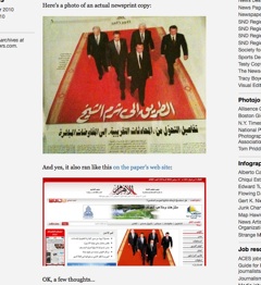 Photoshop, it seems, is not just for image-obsessed Hollywood starlets and sketchy tabloid editors. It’s also for self-conscious heads of state and sketchy state-run newspaper editors. A reader tipped me off the a controversy that’s percolating in Egypt after the country’s largest newspaper ran a doctored photo showing President Hosni Mubarak leading a group of world leaders at this week’s White House peace summit.