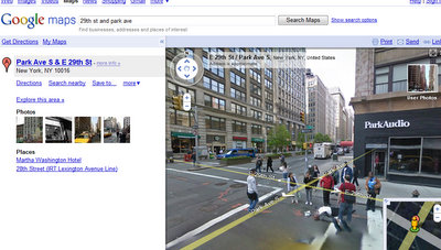 I can’t be sure that this is legitimate, but it sure looks like the Google Street View image was snapped at a bad time. A crowd of people gathers around a man who has collapsed at 29th and Park.