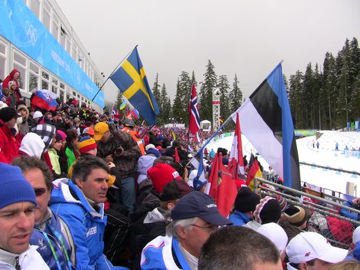 Starting gate for biathlon. Between the competitors, the flags and the fans (top of this post) the colours at this venue were amazing.