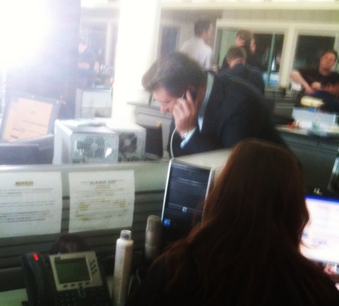 As the 30 Rock shoot at NY1 continues, I just had a “Stars they’re just like us” moment. The battery in Alec Baldwin’s iPhone is no better than anyone else’s. He’s tethered to a computer at one of our reporter desks because his iPhone is in desperate need of a charge. (Now that I think about it, after a morning of tweeting about 30 Rock I’m down to about 20 percent battery remaining.)