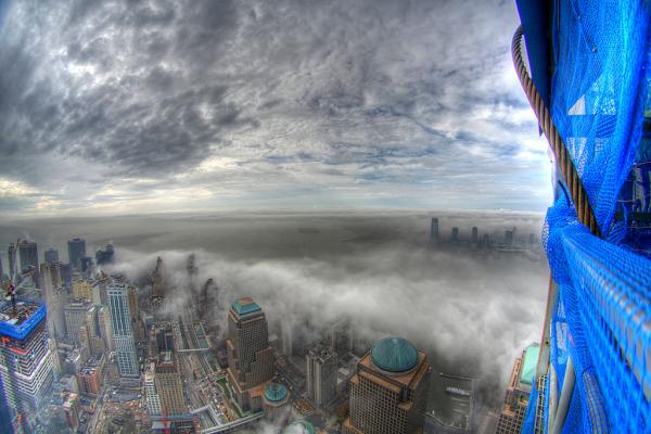 New York’s Port Authority has been sending out some stunning pictures of progress at the World Trade Center. I first saw the pictures early this morning on the Daily Mail website. One World Trade Center has reached its 90th floor—there are just 14 more to go. @WTCprogress is the Twitter feed where you can keep up with the progress photos. I especially loved the one above, taken from the 80th floor—New York swathed in fog.