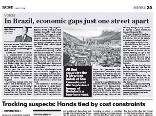 Visitors to Brazil for the World Cup won’t have to go far to see the economic inequality in Rio de Janeiro. USA Today’s Alan Gomez writes about visiting the biggest slum in Brazil. He says it’s separated from the high-priced hotels of São Conrado by only a four-lane road. I was there in April and saw first hand how sharp the contrast is between the haves and the have-nots in Rio.