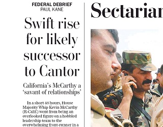 The Washington Post says that in just 48 hours, House Majority Whip Kevin McCarthy (R-Calif.) has become the front-runner in the race to replace Eric Cantor as Majority Leader. McCarthy is only in his fourth term, but fellow members of Congress says McCarthy is a master of relationships who has worked hard to reach out to members of the Republican party.