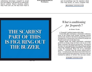 Washington Post reporter Emily Yahr writes about the seven things she learned while auditioning for Jeopardy! First, it takes a lot of auditioning to get on the show. Also, it really is all about the buzzer. And producers really do care about your personality. In other words, don’t be like the guy who said if he won, he would buy a cave in which to make goat cheese.