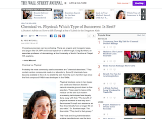 When it comes to sunscreen, there are two different types: chemical and physical. The Wall Street Journal asks a dermatologist to weigh in on which type is best. Dr. Craig Burkhart says he prefers physical blockers because they tend to last longer, but they also can feel greasy. Burkhart says the best sunblock is whatever kind people will use.