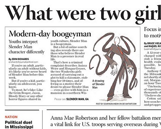 You may not have heard of Slender Man until the news broke this week that two young Wisconsin girls allegedly stabbed a friend 19 times, with the motive of trying to please the fictional character. The Milwaukee Journal Sentinel says Slender Man first appeared online in 2009 and quickly grew into a popular Internet meme featured in stories, web series, online games, podcasts and parodies.