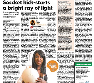 USA Today profiles Jessica Matthews, a 26-year-old entrepreneur and inventor who is focused on creating toys that can produce electricity in Third World countries. Her soccer ball, called the Soccket, can produce 3 hours of lamp light after just 30 minutes of soccer playing. And her jump rope, the Pulse, gives six hours of light after 15 minutes of use.