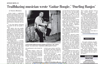 Arthur Smith, the guitarist and banjoist who wrote and recorded “Guitar Boogie” and “Duelin’ Banjos,” has died at the age of 93. The Washington Post says “Guitar Boogie” was known as the song that launched a million guitar lessons. Smith wrote and recorded “Feudin’ Banjos” in 1955, which was later renamed “Duelin’ Banjos” when it was featured in the 1972 film, “Deliverance.” The back-and-forth between two musicians has been recreated countless times, even by Kermit the Frog and Steve Martin. VIDEO