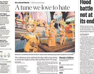 It’s one of the most performed and translated songs of all time, and possibly one of the most annoying. “It’s a Small World” turns 50 years old today. The Tampa Bay Times says Disney Parks celebrated by holding a sing-along. More than a billion people have gone on one of the rides that made the song famous at the various Disney parks around the world. VIDEO