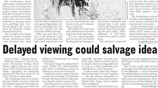 Is Aereo dead? Not necessarily. The New York Post says the decision by the Supreme Court that the digital antenna and cloud-based DVR violated broadcast networks copyrights left open the possibility of a tweak that could keep the service going. If the service were to shift from offering live viewing to “time shifted” viewing, it would seemingly be protected by a 1984 decision in the Betamax case that found such time shifting to be legal.