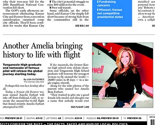 Call it destiny. A 31-year-old Denver woman named Amelia Earhart is preparing to recreate the around-the-world flight attempted by the famous, yet unrelated, female pilot in 1937. She’ll be bringing along photos of the parents who named her Amelia, hoping to give her a name no one would forget. The Kansas City Star says Earhart quit her job as a traffic reporter in March to prepare for the flight which she will make with her co-pilot Shane Jordan.