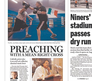 64-year-old Rev. Jose Antonio Rubio, a Roman Catholic priest in Northern California, is an art collector and opera lover. He’s also a boxer. He took up the sport after undergoing prostate cancer surgery six years ago. The San Jose Mercury News says his diocese and the pastor of his church are o.k. with his boxing, but they’re not about to start a priestly boxing team any time soon.
