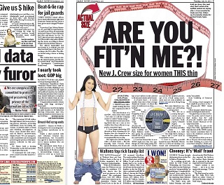 The New York Daily News says J. Crew is getting some backlash for introducing its size 000. The XXXS size is designed for customers with a 23 inch waist. Critics say it’s a case of “vanity-sizing” or intentionally labeling the clothing smaller than it actually is to appeal to customers’ egos. The company says the line was designed to sell in Asia and items are only available online and in J. Crew’s Hong Kong store.
