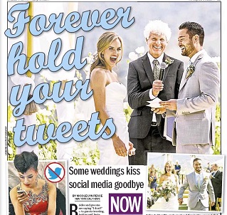 More and more brides and grooms are telling their guests to check their phones at the church door to prevent them from posting to Facebook, Twitter and Instagram. The New York Daily News says while many celebrities have these rules so they can sell the rights to photos later, unplugged weddings are becoming popular among regular couples want to keep their events as a private celebration between them and their guests.