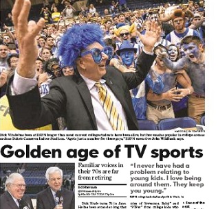 These guys ARE your father’s sportscasters. And maybe your grandfather’s too. USA Today says some of the most popular sportscasters are in their 70s. Guys like Dick Vitale, Brent Musburger, Verne Lundquist and Marv Albert are a hit, even among young sports fans. Long gone is the mandatory retirement age that forced broadcasters like Walter Cronkite off the air.