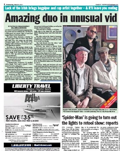 Bagpipes and hip hop—what do they have in common? Both musical genres make an appearance in a new video and the result, says the New York Daily News, is worth watching. After a producer introduced Rally Bop, a Jamaican hip-hop artist, and Brian McGuire, a banker by day, bagpiper by night, the unlikely duo traveled to Ireland to film their first collaboration, “The Sound of the Bagpipe.” Turns out, they had more in common then they thought. Says Rally: “We both enjoy a good pint of Guinness - and are not too fond of the British.”