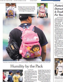 According to tradition, the junior relief pitcher in baseball is assigned the task of carrying a bag of snacks and supplies back to the bullpen. The New York Times says some teams use a Dora or a Hello Kitty backpack to torment the rookies. Says the rookie reliever for the Arizona Diamondbacks: “Everybody laughs at me…they all yell, ‘Cute bag!’” The Times says the hazing ritual has amped up in recent years, which MLB officials say they have no problem with, as long as the bags “maintain a spirit of innocence.”