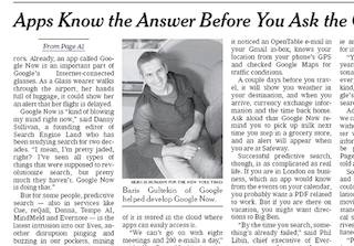 What if there was an app that knew what you were going to ask before you asked it? That day is already here, says the New York Times this morning. The buzz word in Silicon Valley these days is predictive search and companies big and small are hard at work to make your phone or your laptop into “robotic personal assistants.” Imagine your phone telling you to leave early for a meeting so you can beat the traffic even though you never told the phone you had a meeting or how you’d be getting there. A new generation of apps knows to scan your calendar, read your email, track your location and parse traffic patterns to offer up a new level of customized information.