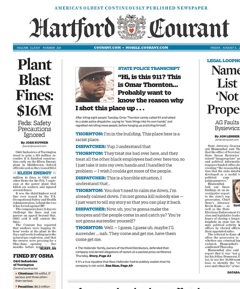 The Hartford Courant has the just-released tapes of Omar Thornton, the man who gunned down eight of his colleagues on Monday, talking with a 911 dispatcher. They’re really interesting. Thorton sounds calm as he explains his motivations. On the recording he blames the racist attitude at his job and says “took things into his own hands.” He also expresses regret for not killing more people. After about four minutes Thorton ended the call and then ended his life.