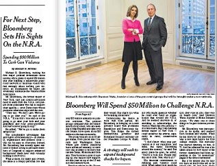 Former New York Mayor Mike Bloomberg is spending $50 million to form a grass roots organization aimed at curbing gun violence. The New York Times says Bloomberg hopes the organization will one day be able to outmuscle the National Rifle Association. Bloomberg says gun control advocates need to use the N.R.A.‘s tactic of punishing lawmakers who don’t support their agenda.
