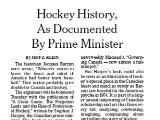 took Harper nine years to research and write. He’s been Prime Minister for seven of those years. The New York Times says it raises the question of how he had time to write it while governing. But it also illustrate’s the importance of hockey to Canadians.