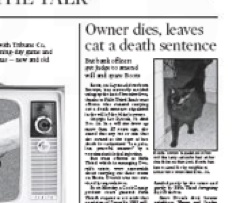 Boots the cat is walking away with his nine lives intact, no thanks to his owner. The Chicago Tribune says when Boots’ owner died earlier this year, she specified in her will that any cats she owned be euthanized. Well, the executors of her will thought that was a little harsh, so they contested the clause and won. Citing donations she’d made to animal groups, they argued that the woman had a commitment to the humane treatment of animals. Boots is now living it up at a shelter.