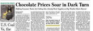 Chocolate prices are on the rise. The Wall Street Journal says a shortage of cocoa beans is being made worse by our developing taste for dark chocolate. The Journal says consumers are drawn to dark chocolate for its highly publicized health benefits and lower sugar content. But dark chocolate takes more cocoa beans to produce than the same amount of milk chocolate.