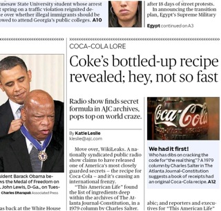 Move over, WikiLeaks, says the Atlanta Journal-Constitution. According to the paper, a national secret of the utmost important has just been leaked to the public—the original recipe for Coca Cola. NPR’s “This American Life” claims to have stumbled upon the recipe in the Journal-Constitution’s archives.