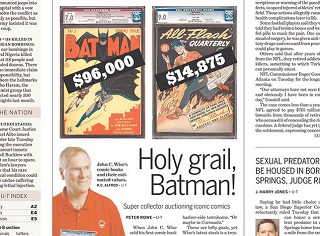 A San Diego man is gearing up to auction off his prized comic book collection. The San Diego Union-Tribune says John C. Wise hopes to make enough money to be able to fund his grandchildren’s educations and buy a bigger home. He’s got the comics that launched Batman, Superman, the Flash and many other comic legends. Experts say Wise’s collection could net more than $1 million.