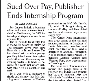 Publisher Conde Nast is ending its legendary internship program, rather than fight lawsuits by former interns that say the program takes advantage of them for having them work for a less than fair wage. The New York Times spoke with several former interns who credit their Conde Nast experience with launching their careers. One former intern compared the experience to auditing a class, “and you don’t expect to be paid to audit a class.”