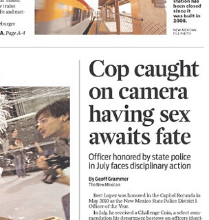 The New Mexican managed to identify the officer, who they say was named the New Mexico State Police District 1 Officer of the Year in 2010. Though his pants were unzipped, the officer managed to keep his utility belt, including his gun and handcuffs securely in place during his extracurricular activities.
