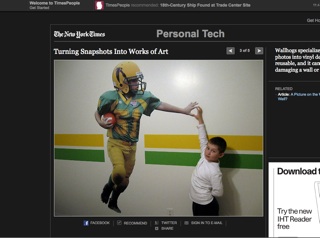 There’s a cool personal tech piece in the New York Times this morning about decorating your walls with photos. We’re not talking about those forest scenes that featured heavily in the dens of the 1970s. With a digital photo you can create a vinyl graphic or customize your own wall paper without losing any of the picture’s details. The Times’ writer says a decal she had made of her cat was so realistic it stopped her other cat in its tracks.