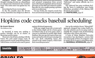 Have you ever wondered how Major League Baseball comes up with its schedule? 30 teams, 162 games, travel, special requests. In a way it’s mind-boggling. The Baltimore Sun says a team of Johns Hopkins researchers has come up with a program that uses thousands of lines of code to produce a nearly perfect schedule. Now they’re hoping to sell it some of the minor leagues - where schedules are often still done in pencil.