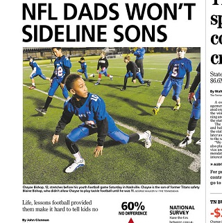 Head injuries, especially concussions, have become a major concern in football at all levels. And yet despite these risks, most former members of the Tennessee Titans want their sons to play football. The Tennessean took an informal survey of 16 former Titans and found only one who said he wouldn’t allow his son to play. Most say the risk is worth it for the lifestyle they’ve been afforded and the lessons they’ve learned playing football.