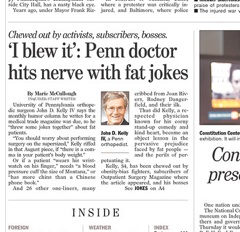 “You should worry about performing surgery on the supersized if a patient wears his wristwatch on his finger or has more chins than a Chinese phone book.” That’s one of the jokes that got a University of Pennsylvania orthopedic surgeon in trouble after he included it in his monthly column for a medical trade magazine.