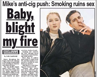 Want another reason to quit smoking? It could ruin your sex life. According to the New York Post, the NYC Health Department’s “Quit Smoking” website claims young men who smoke have a greater risk of erectile dysfunction in middle age. And women are more likely to become infertile. It’s the latest anti-smoking push by Mayor Michael Bloomberg who has already instituted a smoking ban, raised cigarette taxes and produced gruesome anti-smoking ads.