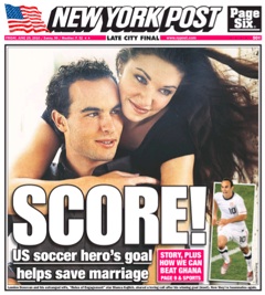 The New York Post says US midfielder Landon Donovan’s winning goal against Algeria in Wednesday’s World Cup match helped him score something more precious than advancing in the tournament: his wife. Donovan and his actress wife, Bianca Kajlich are separated. But friends of the couple are speculating that his post-game shout-out to her is an indication that the couple will soon reunite.