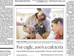 “Sixteen macaws, 13 otters, four chuckwallas, four rabbits, two meerkats, two cranes, two ground hornbills and a black-necked swan” had to be moved inside at the Santa Barbara Zoo, after a (federally-protected) bald eagle started hanging around, looking for a free lunch.