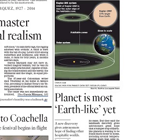 Scientists say they’ve discovered the first Earth-sized planet that orbits in a habitable zone where liquid water could exist. The Los Angeles Times says the discovery of Kepler-186f is beign called the “tip of the iceberg.” The thinking is, if such planets turn out to be common among the distant stars now being explored, there should be many of them closer to Earth.