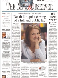 According to Raleigh’s News and Observer, Elizabeth Edwards left her estranged husband John out of her will. She altered the will shortly before her death, naming her daughter Cate as executor of her estate. Edwards left all of her possessions to her children.