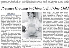 On the front page of the New York Times: is it time for China to end its one-child-per-couple rule? The debate is happening on several levels. The big picture is that some experts believe China needs a larger young workforce to keep the economy clicking. And there’s a debate about the safety of late-term abortions, which some women use to comply with the law.