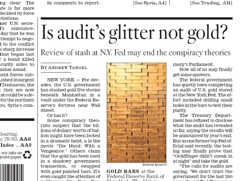 Did the heist in “Die Hard: With a Vengeance” actually happen? The Fed is quietly undergoing an audit of the gold reserves it has stored in an underground vault at the Federal Reserve building on Wall Street to put conspiracy theories about the stockpile to rest. The LA Times says investigators are drilling tiny holes in the gold bricks to confirm their authenticity. The results will be announced by the end of the year.
