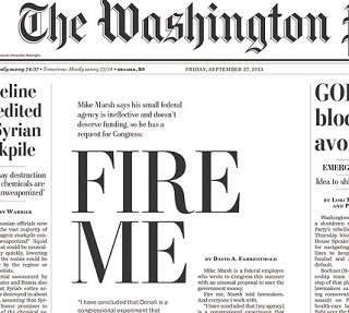Mike Marsh is on a mission. The inspector general for the Denali Commission, an economic-development agency based in Alaska, wants Congress to fire him, and shut down his agency. The Washington Post says Marsh wrote a letter to Congress stating his agency was a congressional experiment that has not worked out. He says the government would be better off spending money elsewhere. His colleagues, understandably, are not amused.