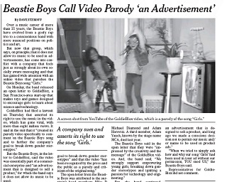 The Beastie Boys are in a battle with the Goldie Blox company over the video that uses the group’s song “Girls.” The New York Times says the company didn’t have permission to use the song. The Beastie Boys say they don’t allow their music to be used to sell products. The band says when they asked why Goldie Blox used the song - the company sued the band. Their claim is that the video is a parody meant to specifically comment on the song.