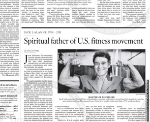 The man credited with starting America’s fitness craze has died at the age of 96 reports the LA Times this morning. Known for his muscles, his enthusiasm, and his “rapid-fire patter,” Jack LaLanne opened the country’s first health club back in 1936. He was known for regarding fitness as a kind of personal religion; the Times dug up a quote LaLanne gave them a few years back, in which he explained his philosophy: “Billy Graham was for the hereafter. I’m for the here and now.”
