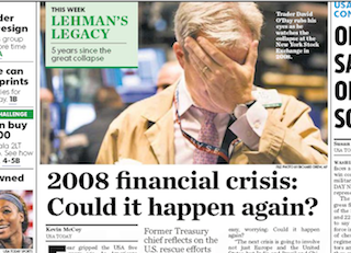 Five years later, USA Today takes a look back at the financial crisis and asks, could it happen again? Experts say what happened in 2008 happened so quickly that world and financial leaders weren’t able to look five years into the future—they were essentially performing triage. And some now worry that the measures that were taken won’t stand the test of time. Experts say too big to fail banks are still a concern as is the increasingly interconnected financial market. Some say the next crisis won’t be contain to just Europe and the U.S. but will likely spread to India, China and Brazil.